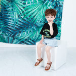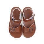 Journey Tan Sandals is a super comfortable sandal with a soft leather feeling and a wide insole design. The front buckle is a real buckle, easily adjustable to fit nicely with your kid's feet. The upper buckle is a faux buckle made with a velcro fastening across the ankle strap to make it easier for kids to put on and off by themselves. It is made of water-resistant material so it's great to wear anytime, anywhere.